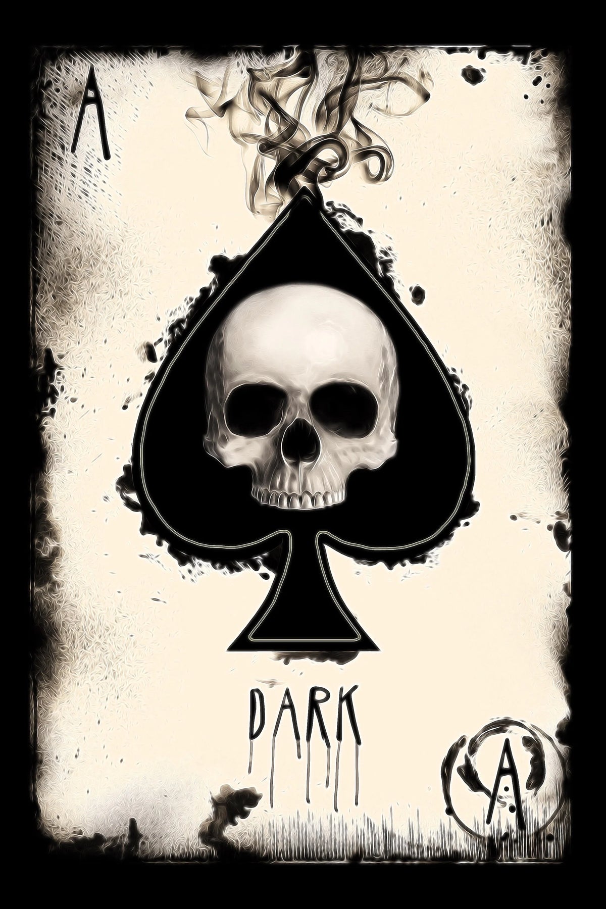 Unleash a bold, gothic vibe with this striking artwork. Featuring a menacing skull set within a spade symbol and surrounded by a smoky, eerie atmosphere, this piece exudes mystery, power, and an edge of danger. Perfect for those who appreciate dark, dramatic designs with a touch of rebellious flair.