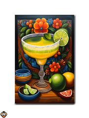 Step into a festive celebration with this vibrant and detailed artwork of a classic margarita. Surrounded by colorful floral patterns and fresh citrus, this piece captures the essence of lively gatherings and tropical indulgence.