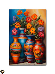 Vibrant Harmony - Floral Elegance in Painted Vases