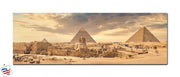 Step into the ancient world with this stunning depiction of the Pyramids of Giza, one of the Seven Wonders of the Ancient World. This artwork highlights the grandeur and historical significance of Egypt's iconic monuments under a dramatic sky.