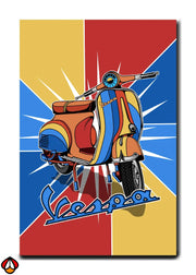 Capture the nostalgia and freedom of vintage travel with this vibrant Vespa artwork. This colorful illustration embodies the charm and timeless style of an iconic scooter, perfect for any retro enthusiast.