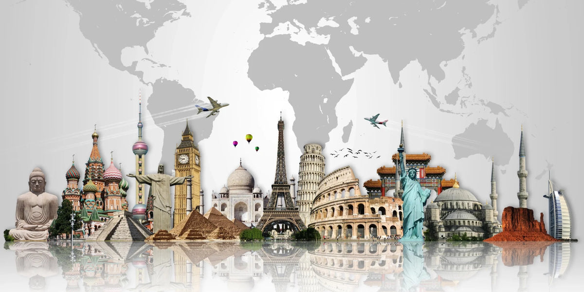 Stunning Visual Design: Showcases famous landmarks like the Eiffel Tower, Taj Mahal, Statue of Liberty, and more.