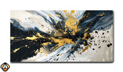 "Cosmic Explosion" captures the dynamic energy of creation, a stunning interplay of gold, black, and white streaks bursting into motion. This piece embodies the essence of powerful transformation and boundless creativity.