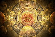 Immerse yourself in the rich history and mysticism of ancient Mesoamerican culture with this stunning artwork of the Aztec Sun Stone. Illuminated in radiant gold tones and intricately detailed, this timeless piece symbolizes the celestial knowledge and artistic mastery of the Aztec civilization.