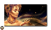 Immerse yourself in the radiant sophistication of this breathtaking artwork. Featuring a graceful figure adorned in shimmering golden elements, this piece exudes opulence, grace, and divine charm.